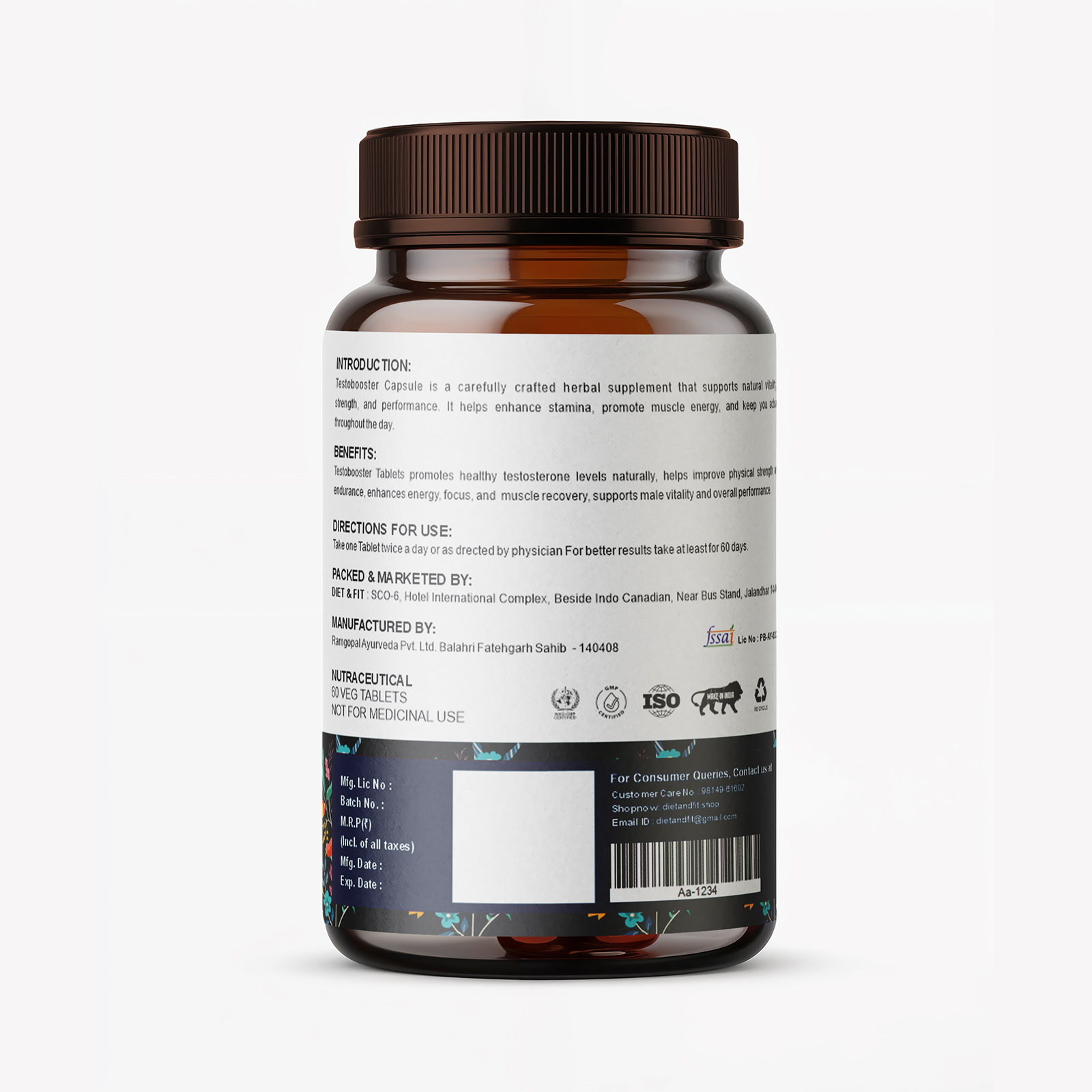Testobooster capsules promotes healthy testosterone levels naturally, helps improve physical strength and endurance, enhances energy, focus, and muscle recovery, supports male vitality and overall performance.